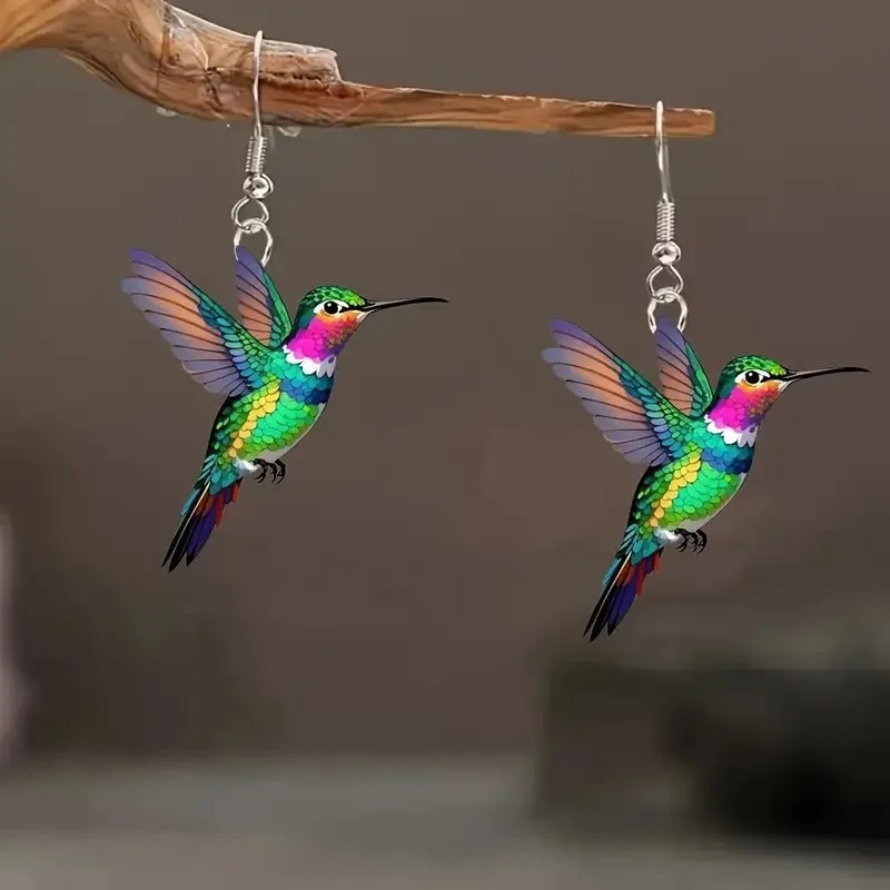 Acrylic Hummingbird Earrings 2D Bird Shape Earrings for Women Girls Ear Charms Spring Summer Drop Dangle Jewelry Gifts Accessory
